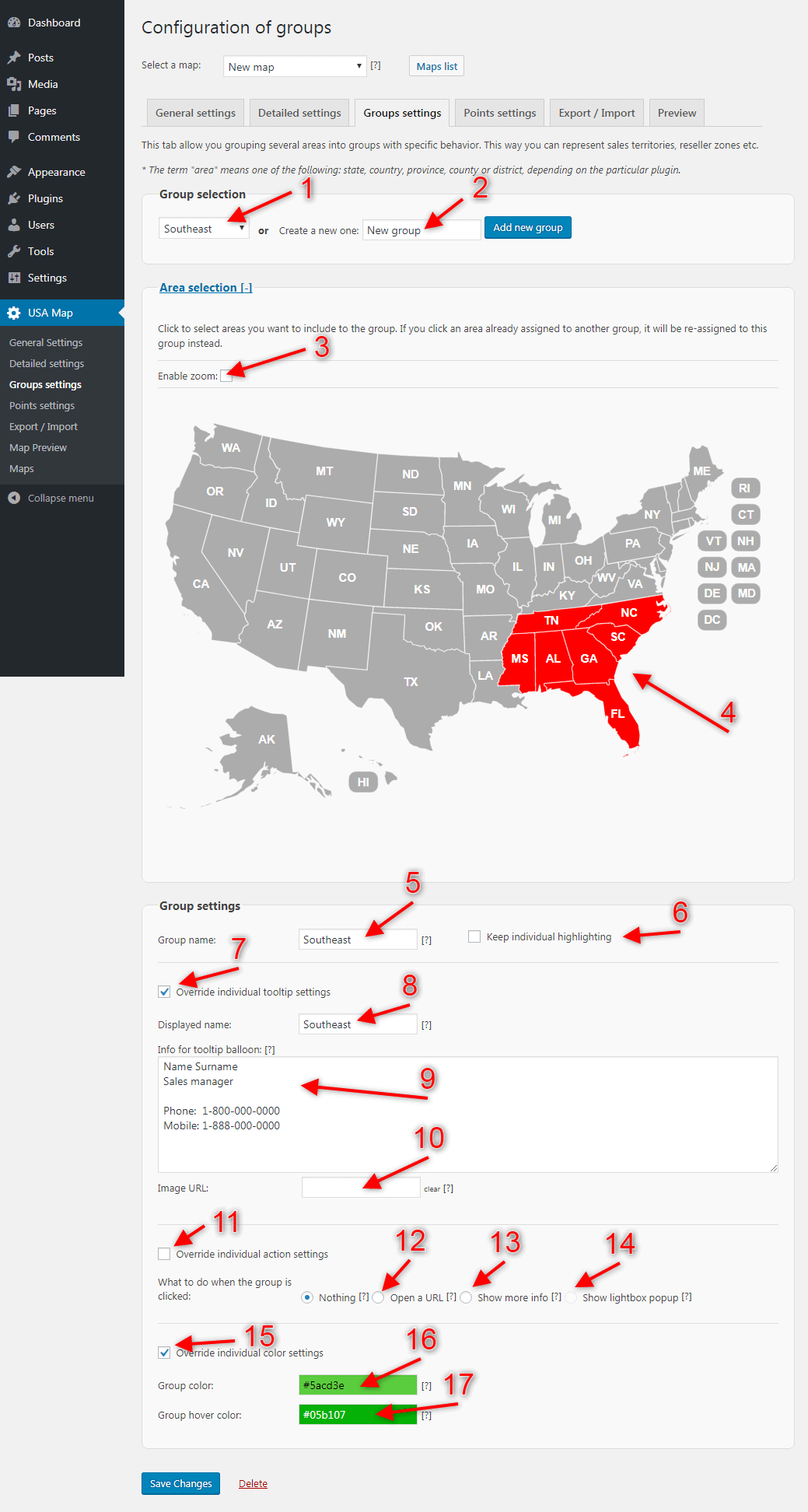 [17] “Group hover color” – sets up the color when the user hovers the mouse cursor over the group.